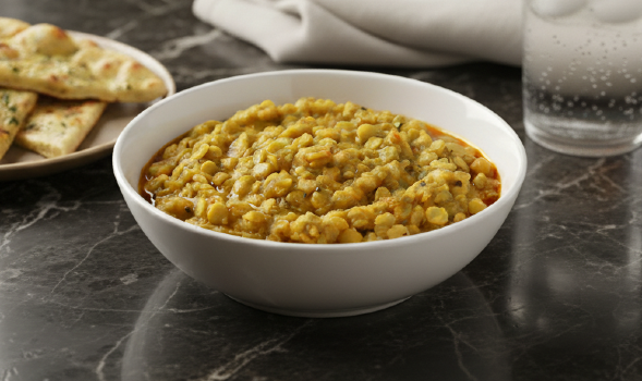 The classic daal chana recipe combines split chickpeas (cholay) with onions, tomatoes, garlic, and green chilies for a hearty dish. It’s often topped with a tarka of cumin and red chili for extra flavour. Some households also add meat (like qeema) for a richer variation.