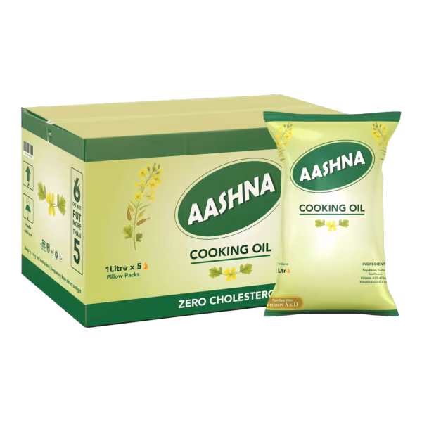 Aashna Cooking Oil delivers purity and rich taste, perfect for all your cooking and frying needs. Its refined formula ensures a light texture and a delicious flavor in every dish. Buy Aashna Cooking Oil 1L Carton (Pack of 5) for quality cooking!