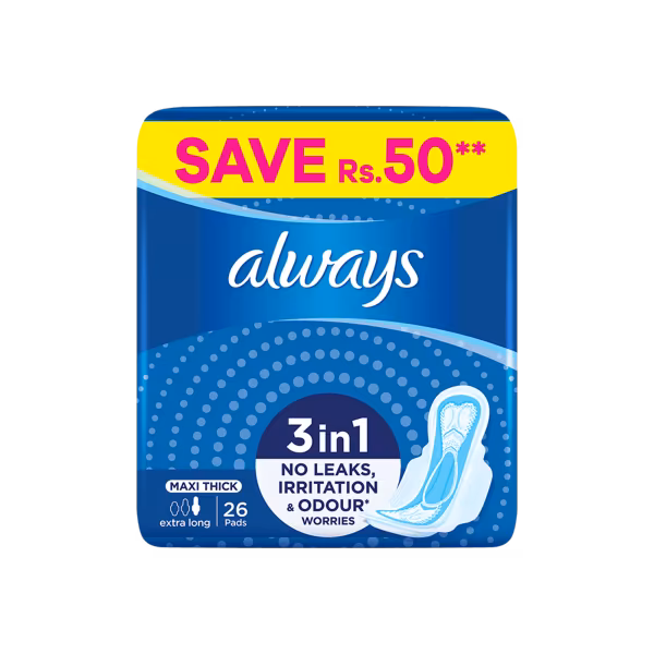 Always Thicks Maxi Night Trio provides ultimate overnight protection with three packs of maxi-thick pads, ensuring you stay dry and secure throughout the night. Buy Always Thicks Maxi Night Trio (26 Pieces) for all-night comfort and protection!