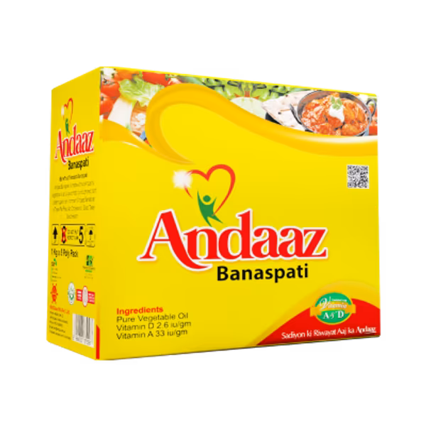 Andaaz Banaspati Ghee delivers rich, authentic taste and smooth texture, ideal for cooking, baking, and frying. Bring the traditional flavors of your favorite recipes to life with every use. Order Andaaz Banaspati Ghee 1kg Carton (Pack of 12) for the perfect cooking experience!
