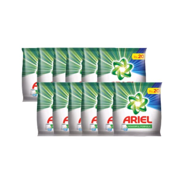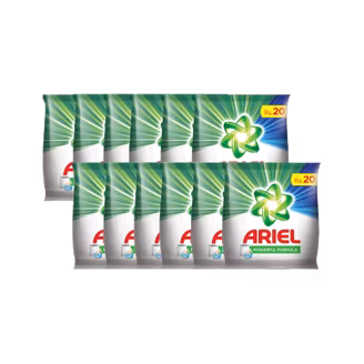 Ariel Washing Powder offers deep cleaning power in every wash. Removes tough stains while being gentle on fabrics. Perfect for daily laundry needs. Buy Ariel Washing Powder 17g Sachet x 12 and keep clothes fresh with ease!