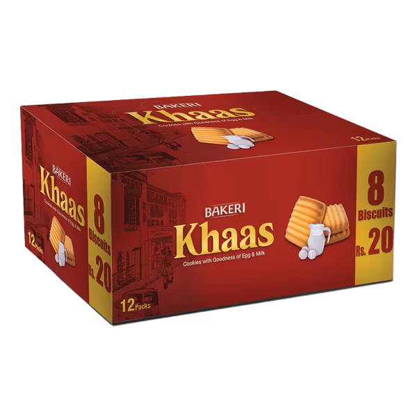 Bakeri Khaas Biscuits deliver balanced sweetness and a satisfying crunch. They're simple, tasty, and perfect for anytime snacking. Buy Bakeri Khaas Biscuit Box Rs. 20 (Pack x 12) and snack on timeless flavour!