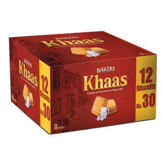 Bakeri Khaas Biscuits are light, crisp, and delicately sweet. Perfect with tea or as a light snack. Great value in every bite. Order Bakeri Khaas Biscuit Box Rs. 30 (Pack x 8) and enjoy a classic treat!