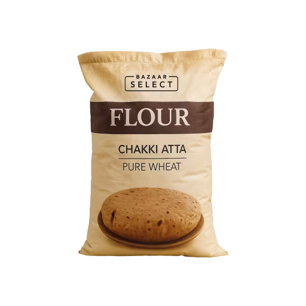 Bazaar Select Chakki Atta is stone-milled for soft, fluffy rotis and parathas. Made from premium whole wheat for natural taste and nutrition. Ideal for everyday meals. Shop Bazaar Select Chakki Atta 10kg and enjoy wholesome homemade rotis!