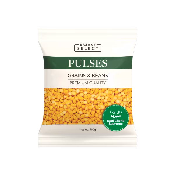 Bazaar Select Daal Chana Supreme is premium quality split chickpeas, rich in protein and fibre. Perfect for daals and savoury dishes. Shop Bazaar Select Daal Chana Supreme 500g and add wholesome nutrition to meals!