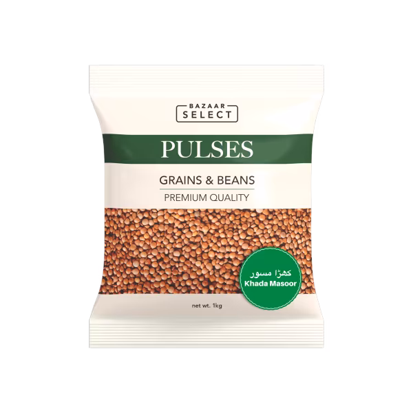 Bazaar Select Khada Masoor is a high-quality whole red lentil, packed with protein and fiber. it's ideal for hearty soups, stews, and dals, providing rich flavor and nutrition to your meals. Shop Bazaar Select Khada Masoor 1kg Pack for a nutritious addition to your kitchen!