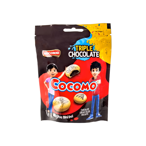 Bisconni Cocomo Triple Chocolate Pouch offers a rich, chocolatey experience in a convenient pouch, perfect for on-the-go snacking. Buy Bisconni Cocomo Triple Chocolate Rs. 100 Pouch and enjoy a chocolate-packed treat anytime!
