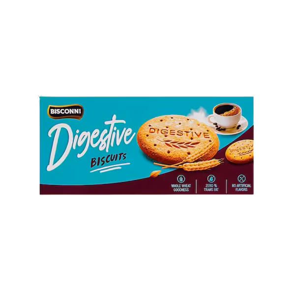 Bisconni Digestive Original Biscuit is rich in wheat fiber and baked to a golden crunch. A healthy option for snack lovers with a hint of sweetness. Great for light munching. Buy Bisconni Digestive Original Biscuit Rs. 30 Box (Pack x 10) and nibble your way to wellness!
