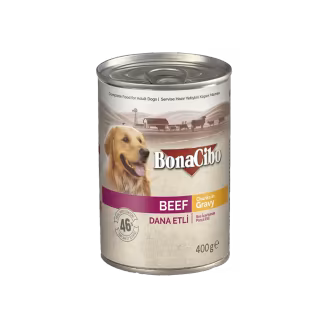 Bonacibo Adult Dog Food Beef Chunks in Gravy is made with tender beef chunks cooked in a rich gravy, delivering a delicious, nutritious meal for your dog. It's packed with proteins to keep your dog strong and healthy. Order Bonacibo Adult Dog Food Beef Chunks in Gravy 400g and offer your dog a hearty meal full of flavor!