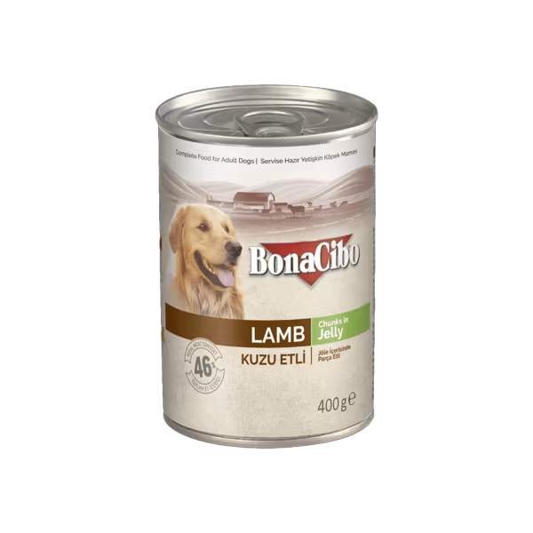 Bonacibo Adult Dog Food Lamb Chunks in Jelly offers succulent lamb chunks in a flavorful jelly, providing an irresistible meal full of vitamins and minerals that promote your dog's health. Shop Bonacibo Adult Dog Food Lamb Chunks in Jelly 400g and give your dog a tasty and nutritious treat!