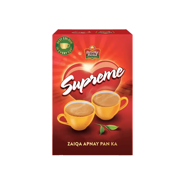 Brooke Bond Supreme Tea brews a strong, full-bodied cup perfect for traditional tea lovers. Packed with the aroma of quality tea leaves. Shop Brooke Bond Supreme Tea 80g and start your day with rich flavor!