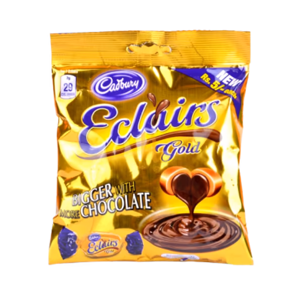 Cadbury Eclairs Gold is a rich golden caramel shell with a luscious chocolate filling for a premium taste. Great for any occassion or as a gift. Buy Cadbury Eclairs Gold Rs. 5 Pack (45 Pieces) for a rich and creamy caramel craving!