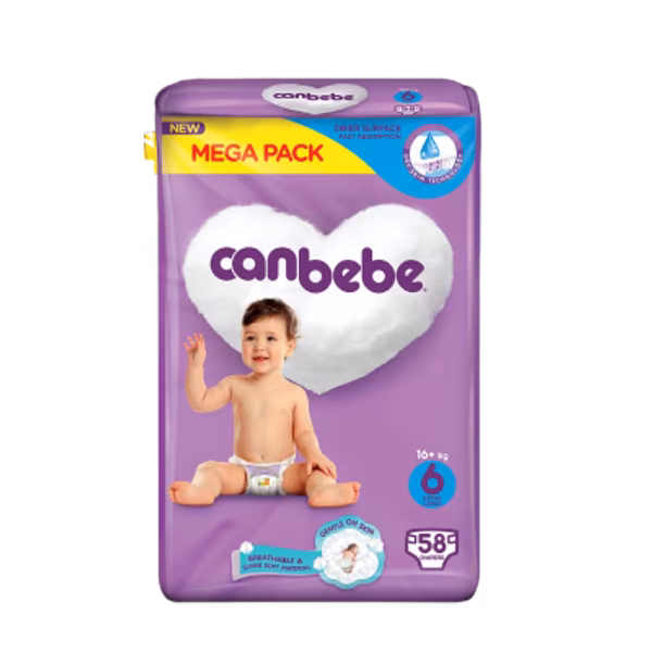 Canbebe Diapers Size 6 Mega Pack offers superior comfort and long-lasting dryness for your babys protection, so your baby can play and sleep without worries. Shop Canbebe Diapers Size 6 Mega Pack (58 Pieces) and enjoy worry-free days and nights!
