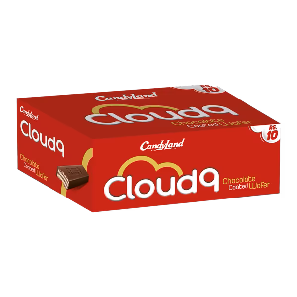Candyland Cloud 9 is a rich chocolate bar with a smooth, creamy filling that melts into a heavenly taste. Order Candyland Cloud 9 Rs. 10 Box (24 Packs) for a comforting chocolate escape!