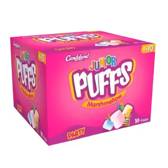 Candyland Junior Puff Marshmallow is filled with ini marshmallows that are soft, chewy, and full of sweet goodness.Suitable for enhancing your snack time. Order Candyland Junior Puff Marshmallow Rs. 10 Box (18 Packs) for a fluffy craving!