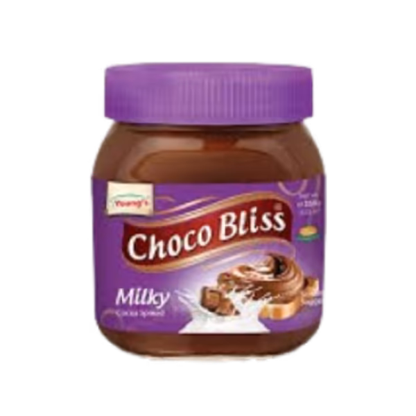 Chocobliss Milk Chocolate Spread is a smooth and creamy chocolate delight made with real cocoa and milk. Perfect for sandwiches, waffles, or desserts. Order Chocobliss Milk Chocolate Spread 350g Jar online and sweeten up your snack moments.