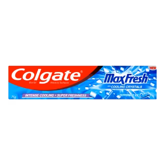 Colgate Maxfresh Peppermint Ice refreshes your mouth while fighting cavities and plaque, leaving your breath feeling cool and invigorated. Order Colgate Toothpaste Maxfresh Peppermint Ice 75g Pack for a chillingly fresh clean!