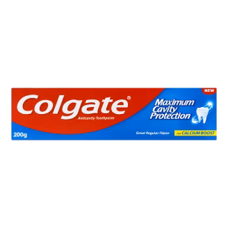 Colgate Toothpaste Regular provides trusted protection with every brush. It effectively fights cavities, plaque, and bad breath for a healthy, bright smile. Get Colgate Toothpaste Regular 200g Pack and enjoy lasting protection with every brush!