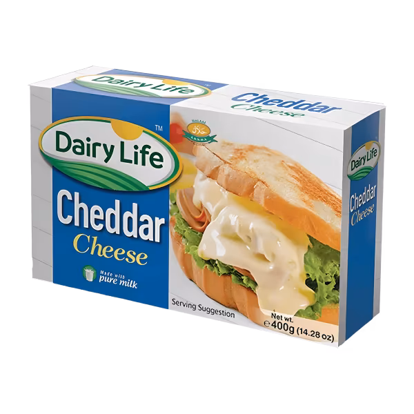 Dairy Life Cheddar Cheese delivers a rich, creamy taste with a smooth texture, perfect for sandwiches and cooking. Buy Dairy Life Cheddar Cheese Block 400g online for delicious meals!