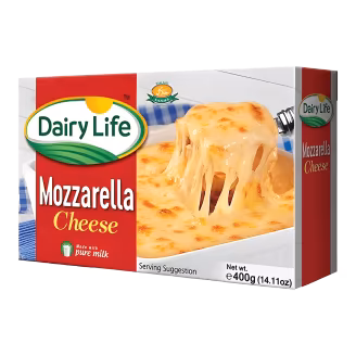 Dairy Life Mozzarella melts perfectly, making it great for homemade pizza, pasta, and more. Buy Dairy Life Mozzarella Blocks 400g online for authentic flavor!