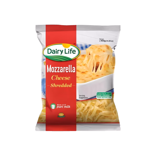 Dairy Life Mozzarella Shredded offers a stretchy and creamy melt, ideal for pizzas and pastas. Order Dairy Life Mozzarella Shredded 400g online for perfect melting!