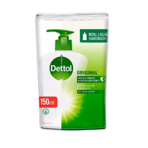 Dettol Handwash Original 150ml Pouch protects against germs while keeping your hands soft. Trusted antibacterial formula for everyday hygiene. Buy Dettol Handwash Original 150ml Pouch and wash away germs with care!