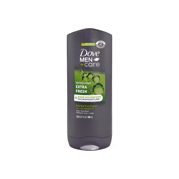 Dove Men Care Body & Face Wash Extra Fresh is designed to refresh and hydrate your skin, leaving it feeling clean and revitalized. Its energizing formula is perfect for a quick, effective cleanse, keeping you fresh all day. Order Dove Men Care Body & Face Wash Extra Fresh 400ml for an energizing, all-over clean!