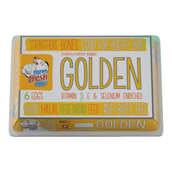 Farm Fresh Golden Eggs offer the same high-quality eggs in a smaller pack. With their rich golden yolks and delicious flavor, they are perfect for smaller households. Buy Farm Fresh Golden Eggs (6 Pieces) for fresh eggs in every meal!