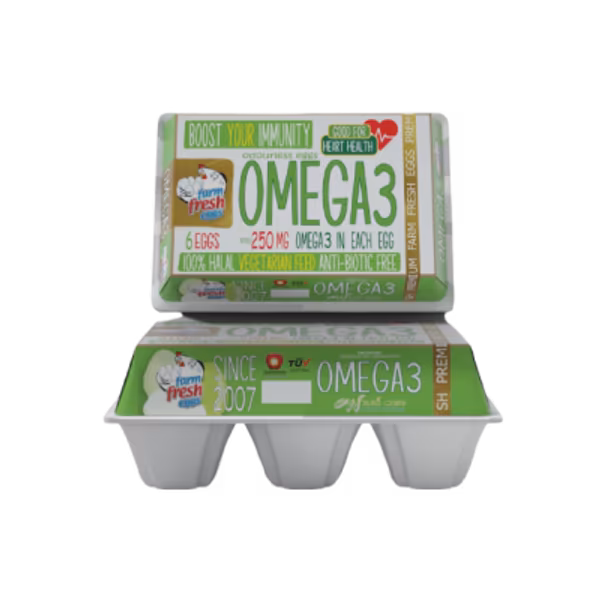 Farm Fresh Omega 3 Eggs provide a premium source of Omega-fatty acids and protein in a convenient pack size. Perfect for heart health, these eggs are a smart choice for quick meals. Buy Farm Fresh Omega 3 Eggs (6 Pieces) online and enjoy better nutrition with every bite.