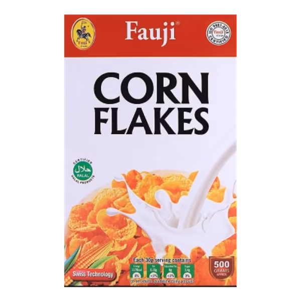 Fauji Corn Flakes is a crispy and delicious corn flakes made from high-quality grains, perfect for a nutritious breakfast. Fortified with essential vitamins and minerals. Buy Fauji Corn Flakes 500g Box for a crunchy, healthy start to your day!