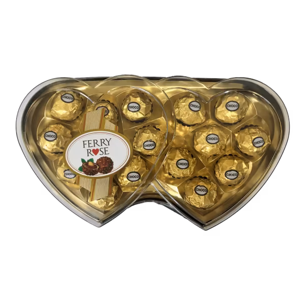 Ferry Rose Chocolate Double Heart includes rich, heart-shaped chocolates in a beautiful box. It's perfect for gifting or special occasions. There is sweetness in every bite. Get Ferry Rose Chocolate Double Heart Box (16 Pieces) and share the love!