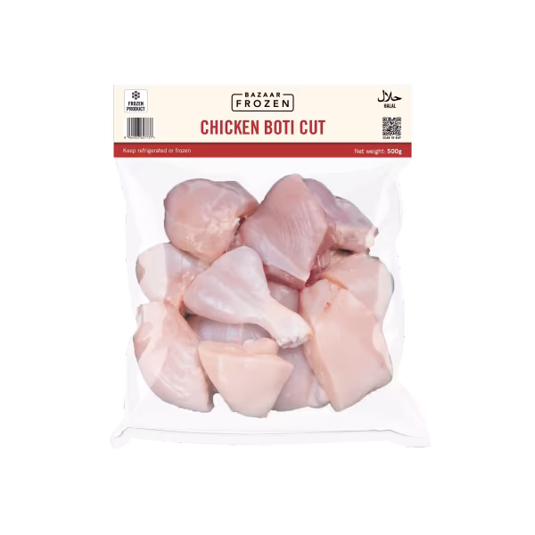 Frozen Chicken Boti Cut is expertly diced for kebabs, gravies, and rice dishes. Juicy and lean, it's a kitchen essential for everyday recipes. No preparation needed, just cook and serve. Order Frozen Chicken Boti Cut 1kg and simplify your meal prep!
