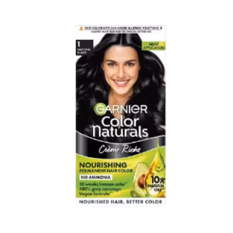 Garnier Naturals Natural Black Hair Color delivers a rich, deep black hue that enhances your hairs natural shine. The nourishing formula, enriched with essential oils, helps protect and condition your hair while providing vibrant, long-lasting color. Perfect for those seeking a natural, glossy black look. Shop Garnier Naturals Natural Black Hair Color 1 for a deep, rich black color that lasts!