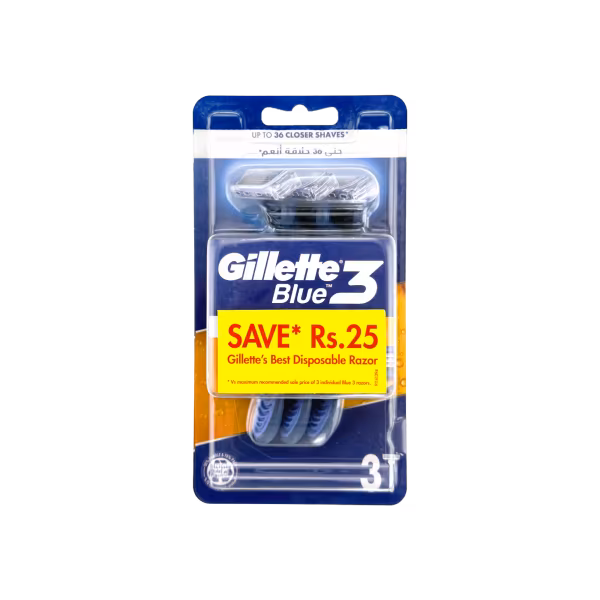 Gillette Blue 3 Disposable Razors offer a quick and efficient shave with a 3-blade system thats ideal for everyday use. Convenient and sharp, theyre perfect for your grooming routine. Get Gillette Blue 3 Disposable x3 for smooth, sharp, and hassle-free experience!