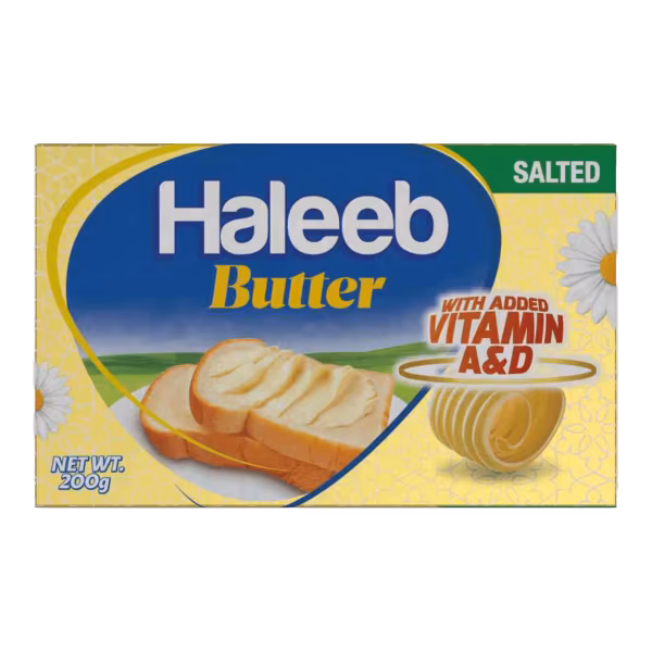 Haleeb Premium Butter delivers creamy, rich flavor for spreading, baking, and sauteing. Made from premium dairy cream for full taste. A staple in any kitchen. Order Haleeb Premium Butter 200g and taste the golden difference!