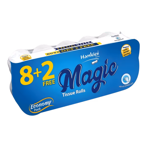 Hankies Toilet Roll (Pack of 10) provides excellent value with 10 rolls of soft, strong toilet paper. Ideal for bulk purchases to ensure your bathroom is always stocked. Get Hankies Toilet Roll (Pack of 10) online for an economical toilet paper solution.