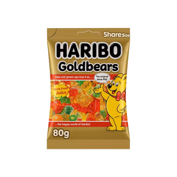 Haribo Gold Bears Jelly is a chewy, colorful treat that's loved worldwide. Bursting with fruity flavors and fun shapes, perfect for snacking and sharing. Irresistible for kids and adults alike. Buy Haribo Gold Bears Jelly 80g and chew on sweet fun!