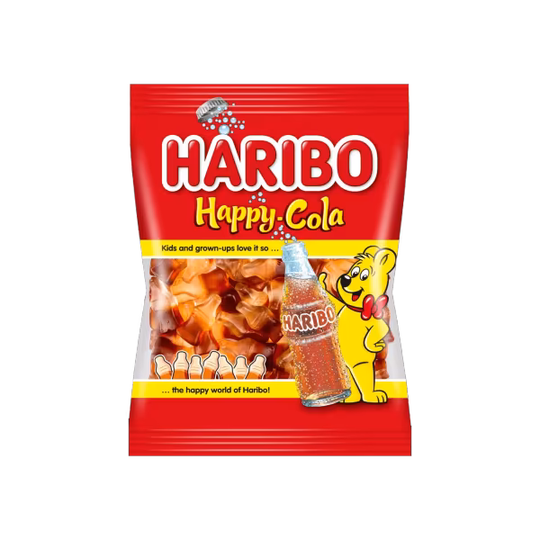 Haribo Happy Cola Jelly delivers the fun of fizzy cola in a chewy, bottle-shaped candy that's hard to resist. Bursting with nostalgic soda flavor, each bite brings playful joy for candy lovers of all ages. Great for lunchboxes, parties, or sweet snacking anytime. Buy Haribo Happy Cola Jelly 80g and chew on cola fun!