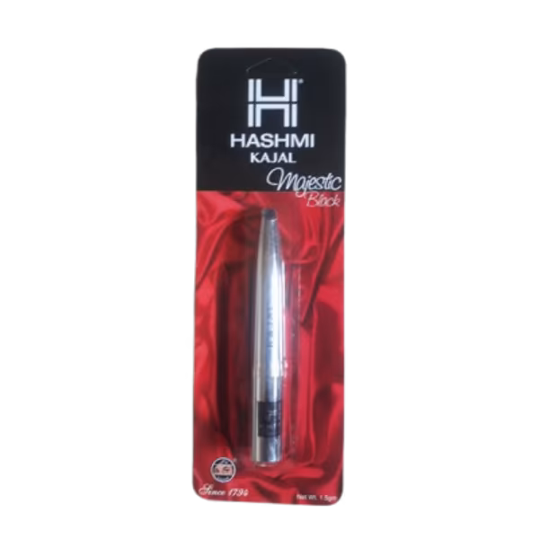 Hashmi Kajal Majestic Black gives rich, dark pigment in a smooth-gliding stick. Ideal for bold eye looks and traditional kajal depth. Order Hashmi Kajal Majestic Black and define your eyes beautifully!
