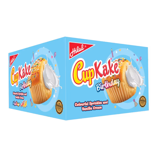 Hilal Cup Kake Birthday is a festive cupcake with a soft, fluffy texture and a sweet flavor for celebrations. Get Hilal Cup Kake Birthday Rs. 20 Box (12 Packs) for a joyful treat!