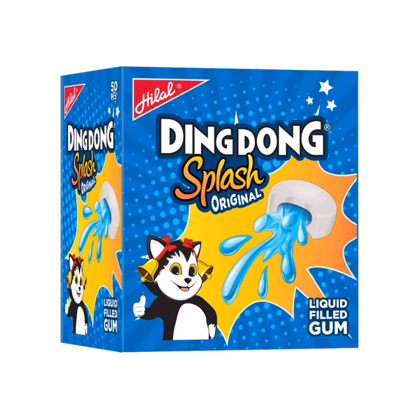 Hilal Ding Dong Splash is a classic bubble gum with a fruity splash, bursting with long-lasting flavor in every chew. Perfect for satisfying instant cravings. Order Hilal Ding Dong Splash Original Rs. 5 (50 Pieces) for a juicy blast of fun!