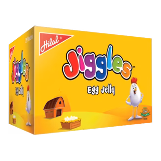Hilal Jiggles Egg Jelly is a tasty egg-shaped jellies packed with juicy fruity flavors that kids love. Buy Hilal Jiggles Egg Jelly Box Rs. 10 (24 Pack) for a fun and flavorful snack for kids!