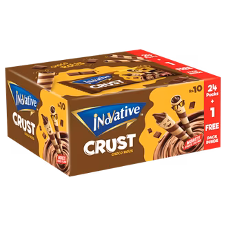 Innovative Crust Chocolate Rolls are filled with rich chocolate cream and wrapped in a crispy outer layer, offering a deliciously indulgent snack. Shop Innovative Crust Chocolate Rolls Rs. 10 Box (24 Packs) and enjoy chocolatey goodness in every bite!