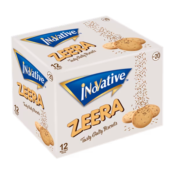 Innovative Zeera Biscuit brings together a crispy texture with the aromatic flavor of cumin, making it the perfect savory snack. Shop Innovative Zeera Biscuit Rs. 20 Box (12 Packs) and enjoy a deliciously spiced snack!