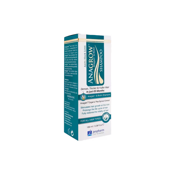 Jenpharm Anagrow Shampoo is formulated to reduce hair fall and promote healthy growth. Enriched with caffeine and biotin. A dermatologically tested solution for stronger hair. Buy Jenpharm Anagrow Shampoo 100ml and revive your hair!