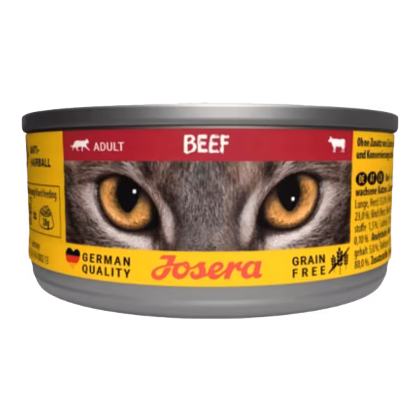 Josera Adult Cat Food Can Beef is packed with high-quality beef, providing your cat with essential nutrients and a delicious taste. it's perfect for maintaining healthy energy levels. Order Josera Adult Cat Food Can Beef 85g and keep your cat strong and healthy with every meal!