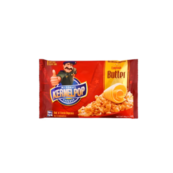 Kernel Pop Microwave Popcorn English Butter gives you the creamy, smooth butter flavor you crave. Easy to prepare and great for quick snacking. Order Kernel Pop Microwave Popcorn English Butter 90g Pack and enjoy buttery popcorn in no time!