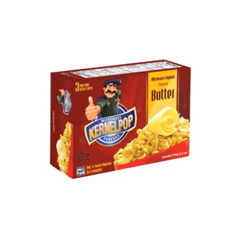 Kernel Pop Microwave Popcorn English Butter brings the rich, creamy taste of English butter to your popcorn. With three packs in one, this microwave popcorn is perfect for sharing or enjoying solo at home. Order Kernel Pop Microwave Popcorn English Butter 90g (Pack of 3) and enjoy the buttery perfection!