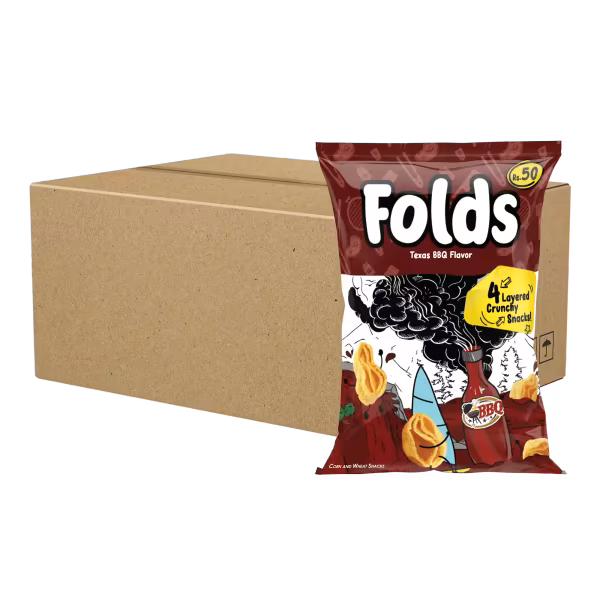 Kolson Folds BBQ Flavour are crisp, folded potato snacks with smoky barbecue seasoning. They're crunchy, bold, and perfect for sharing. A great choice for snacking anytime. Buy Kolson Folds BBQ Flavour Rs. 50 Carton (Pack x 24) and enjoy bold BBQ crunch!
