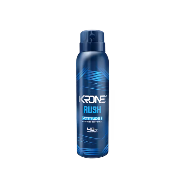 Krone Attitude Rush Body Spray delivers a sharp, invigorating scent that awakens the senses. Designed for modern, active individuals. Keeps you fresh for hours. Get Krone Attitude Rush Body Spray 150ml and feel the rush!